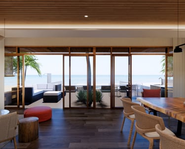 Embracing the island's natural environment. Villa Bantayan is a beach house that makes living seamless with the sea view. This tropical style, lush vibrant design features wood finishes and accent walls that reflects relaxed and casual beach living.